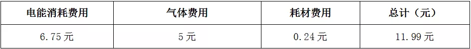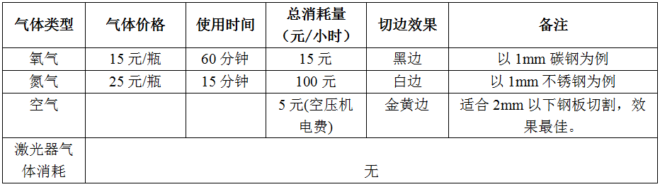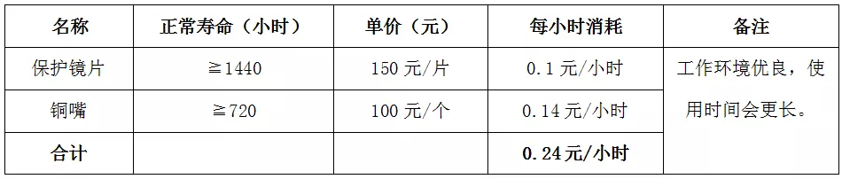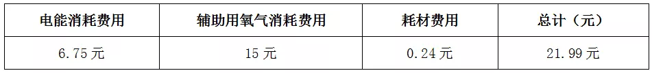 4、 光纤激光切割机每小时总计消耗费用:(使用氧气切割)
