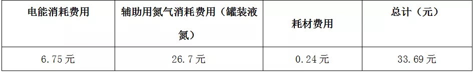 5、光纤激光切割机每小时总计消耗费用:(使用氮气切割)